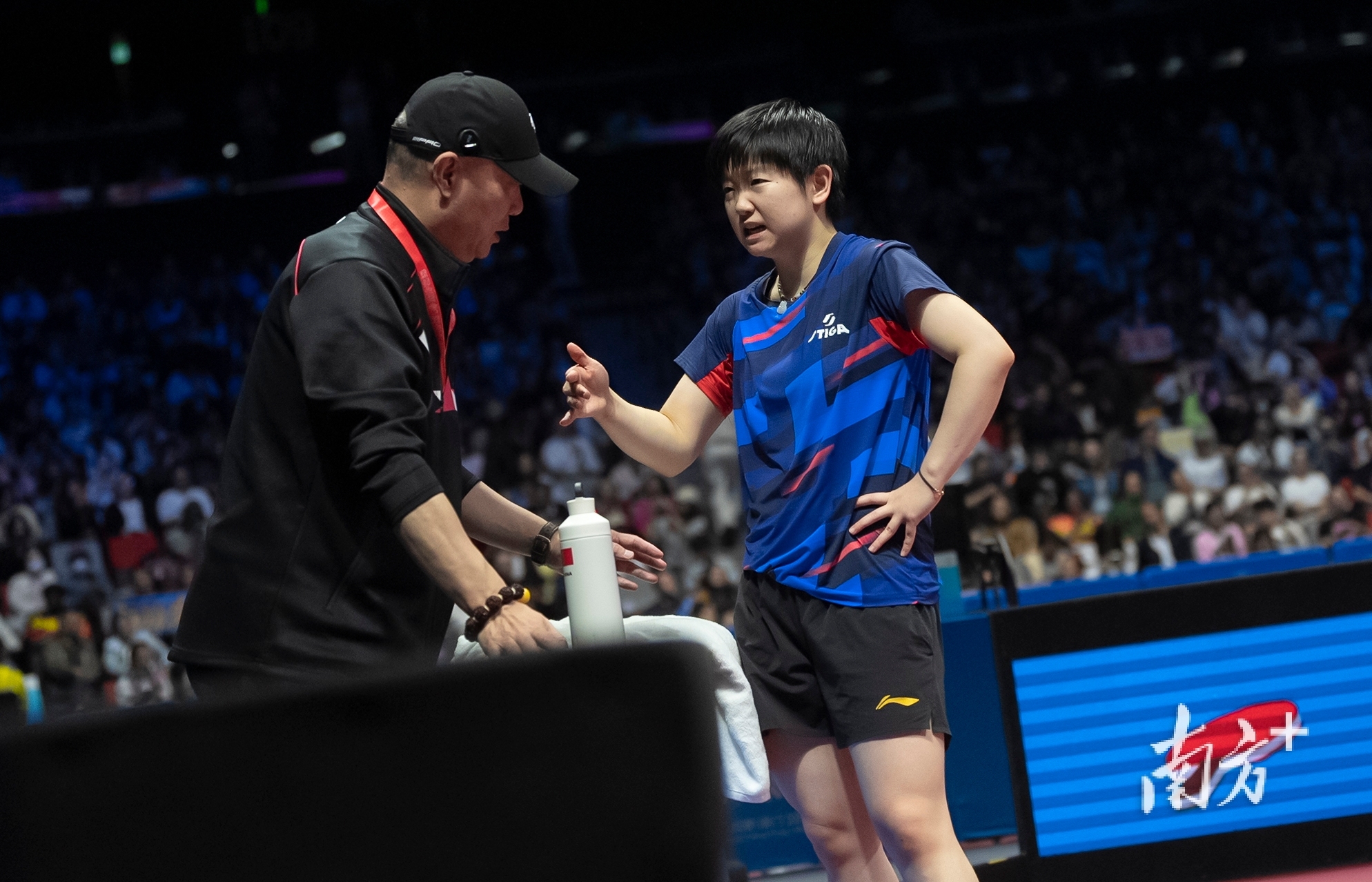 第五局比赛开始前,孙颖莎申请换了一件球衣,回来后快速进入状态取得领先,王曼昱在落后6分的情况下连续追分,在局点连续追平,两人比分紧咬,最终孙颖莎顶住压力,16比14拿下本局。