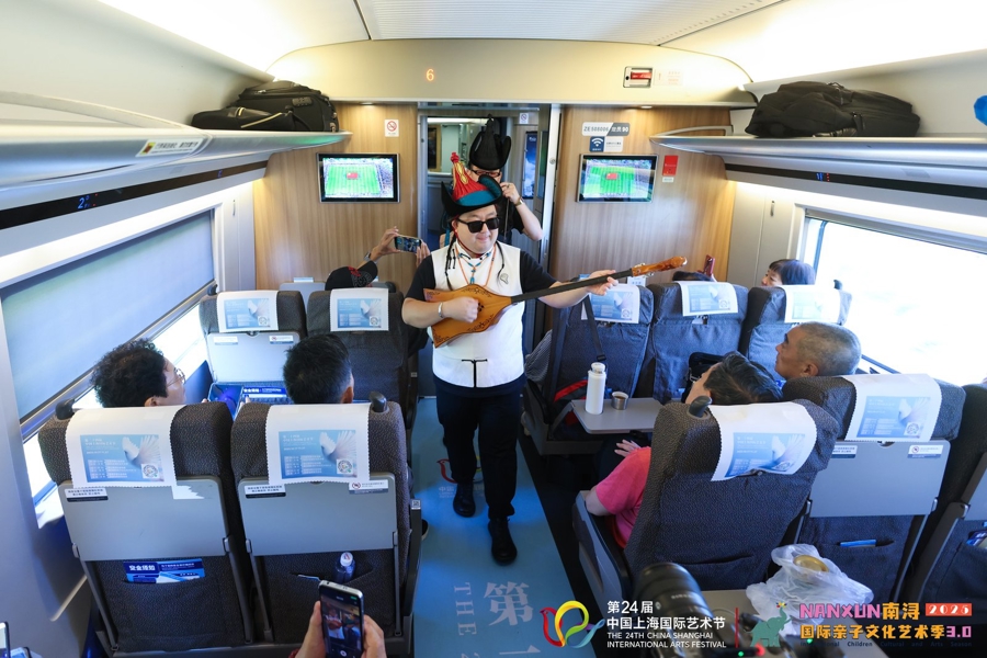 10月11日上午8时许,随着第24届中国上海国际艺术节首趟分会场专列G8981次复兴号列车从上海南站驶出,车厢里也逐渐热闹了起来。孩子们雀跃讨论着对演出的期待,大人们则捧着南浔文旅地图规划行程,不时交流游玩攻略。“以前去南浔要转车,今天赶上艺术季开幕,坐专列1小时就能到,太方便了!”带着女儿乘坐首趟专列的上海游客张先生,手里拿着艺术节南浔分会场的手册,“特意赶在开幕当天来,提前查了节目单,打算带孩子看完开幕式演出,再逛一逛古镇,周末两天刚好够用。”