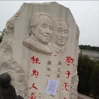 2012年5月31日,北京中华文化名人园,冰心纪念碑前,一名中年男子手持红色喷漆,颤抖着在汉白玉碑面上涂下“教子无方,枉为人表”八个大字。